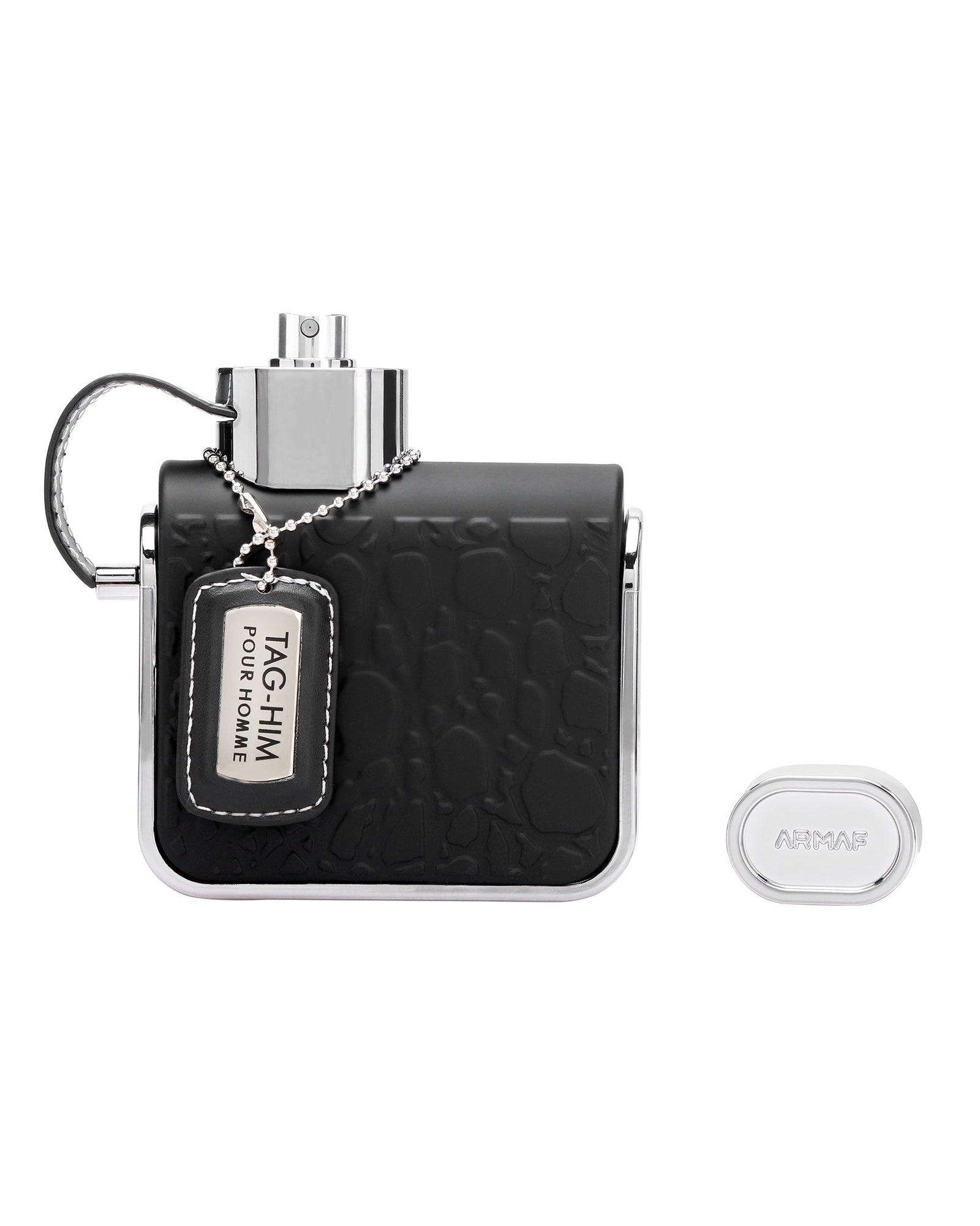 TAG-HIM POUR HOMME BY ARMAF TAG HIM POUR HOMME Confident, iconic and swashbuckling - an intense and energizing scent reveals masculine modernity. An aromatic woody fragrance with top notes of lemon, grapefruit and lavender mingled with spicy accents of pink pepper, ginger and warm woods of cedar and vetiver. The dry down is woody and ambery